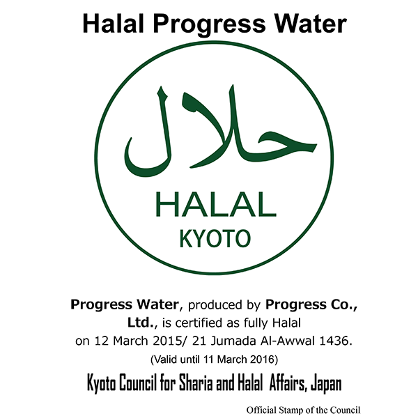 ハラール認定プログレスウォーターは、ハラール認証を取得いたしました。